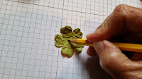 Your berry is almost complete, but you need your leaves to top them off. I used Old Olive card stock, punched it with the Pansy punch and then added texture by first lightly spritzing the leaves with water.